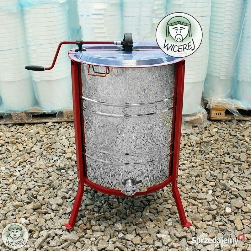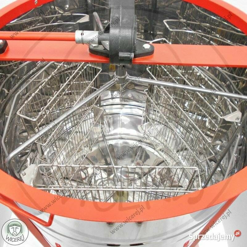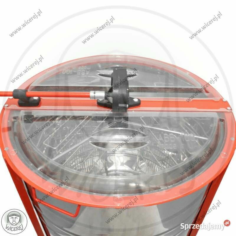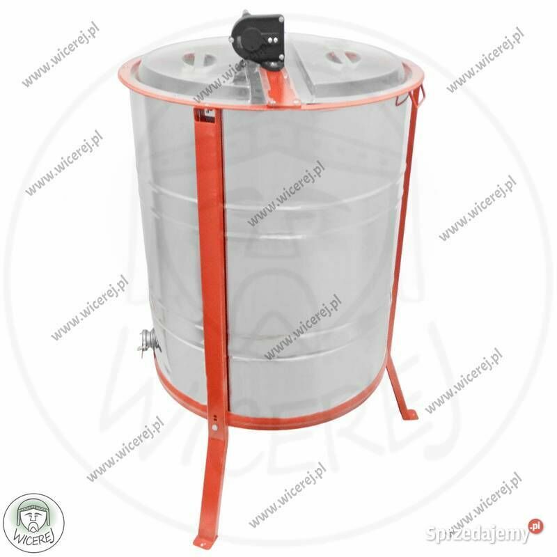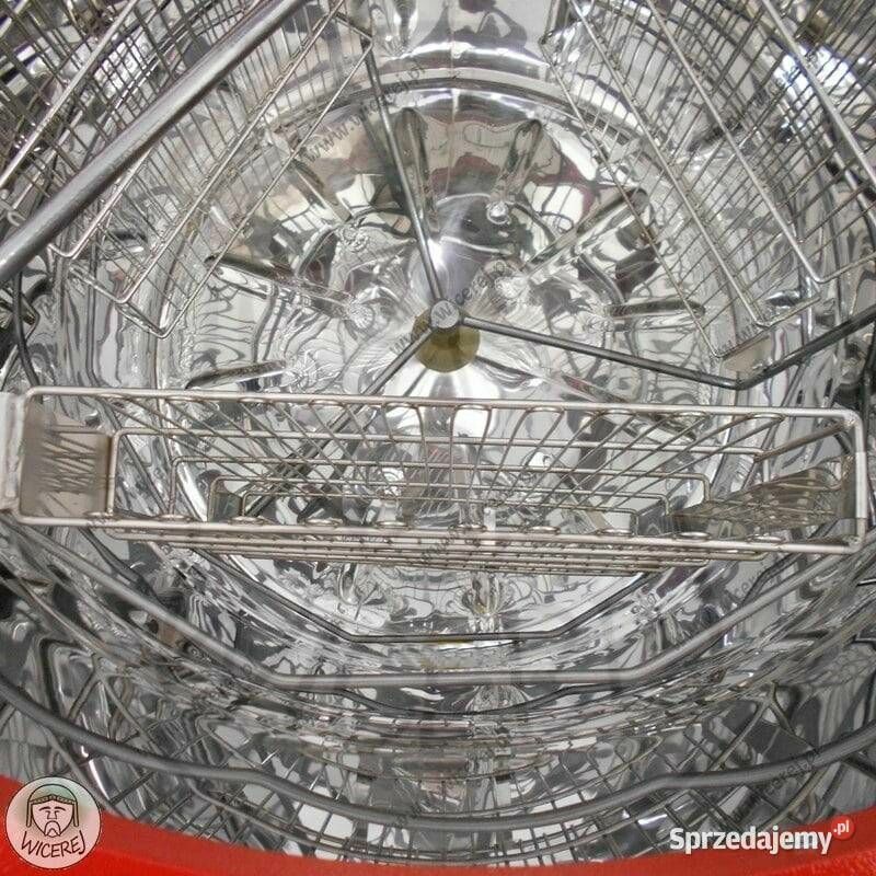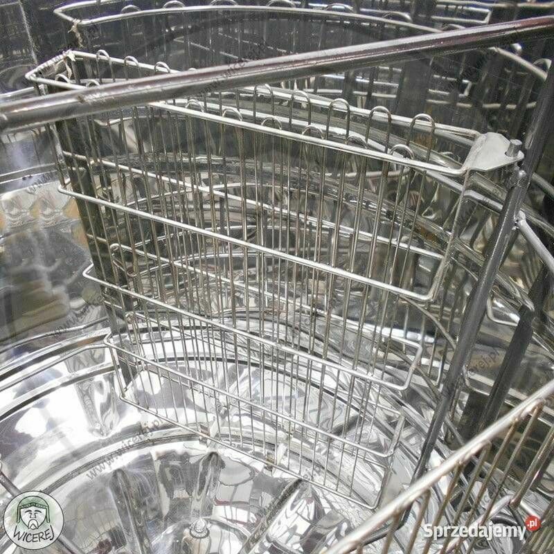 Miodarka 3 Kasetowa Ręczna Uniwersalna (Zbiornik i kasety - stal nierdzewna kwasoodporna, zawór nierdzewny wspawany). Jest to model miodarki z 3 kasetami uniwersalnymi odwracalnymi, tzw. miodarka kasetowa, w której nie trzeba wyciągać i przekładać ręcznie ramek na drugą stronę po ich odwirowaniu - w tym modelu odwraca się w miodarce kasety. Miodarka jest uniwersalna - maksymalny rozmiar ramki, jaką można używać w miodziarce to Dadant Gniazdowa. Do Wirówki pasować będą też ramki Wielkopolskie, Warszawskie Zwykłe, Warszawskie Poszerzane. Miodarkę wyposażono w napęd ręczny (koła zębate napędu to metal). Dodatkowo dno miodarki wykonano w kształcie stożka, aby ułatwić spływanie miodu. Zbiornik miodarki wykonany ze stali nierdzewnej kwasoodpornej, Wirnik (kosz rotora) wykonany ze stali malowanej proszkowo, 3 KASETY WYKONANE ZE STALI NIERDZEWNEJ KWASOODPORNEJ, zawór klapkowy wspawany wykonany ze stali nierdzewnej, pokrywy wykonane z transparentnego plastiku tłoczonego. Miodziarka Wirówka do miodu Kompletna z Podstawą i Pokrywami.