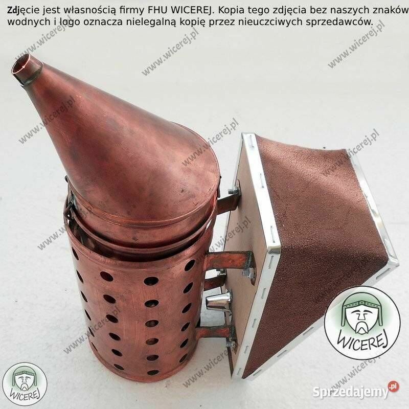Posiadamy w ofercie nowy Podkurzacz Solidny Miedziany, Odymiacz Premium. Obdymiacz, podkurzacz pszczelarski posiada perforowaną chłodnicę – która stanowi osłonę przed poparzeniem. Podkurzacz wykonany jest z miedzi (korpus), natomiast mieszek z grubej skóry naturalnej i sklejki. Odymiacz składa się z korpusu, uchwytu do wieszania oraz Chłodnicy (która chroni przed poparzeniem) oraz wymiennego mieszka ze skóry naturalnej. (istnieje możliwość wymiany miecha). Ten model podkurzacza ze względu na wykonanie z grubej miedzi jest niezwykle wytrzymały, solidny i przetrwa wiele sezonów pszczelarskich. Gruba skóra naturalna miecha zapewni długą pracę bez konieczności jego wymiany. Podkurzacz jest niezbędnym narzędziem pszczelarskim i służy do odymiania pszczół. Dzięki dymowi można łatwo uspokoić pszczoły, przed przystąpieniem do prac związanych z ulami lub do miodobrania. Odymiacz jest bardzo przydatny, ponieważ zmniejsza agresję pszczół, co skutkuje łatwym i szybkim wykonaniem prac przy ulach. Dla porównania pokazujemy wytrzymałość podkurzacza. Ostatnie zdjęcie ukazuje podkurzacz nowy (po lewej) oraz podkurzacz miedziany używany 20 lat (po prawej).