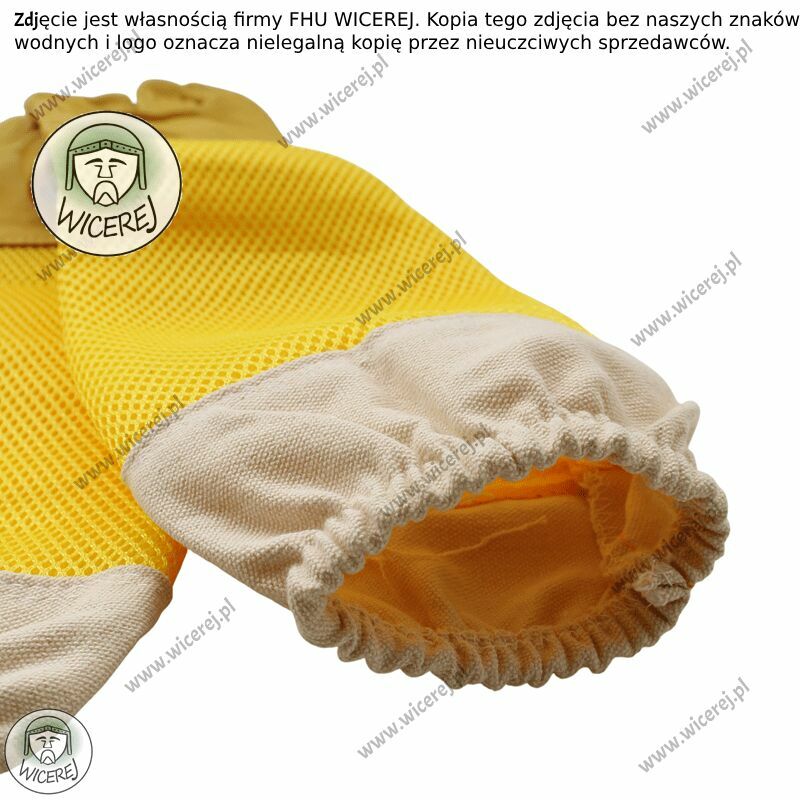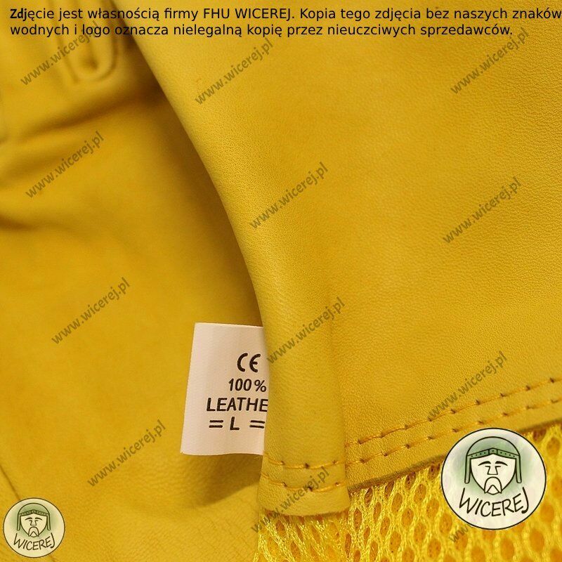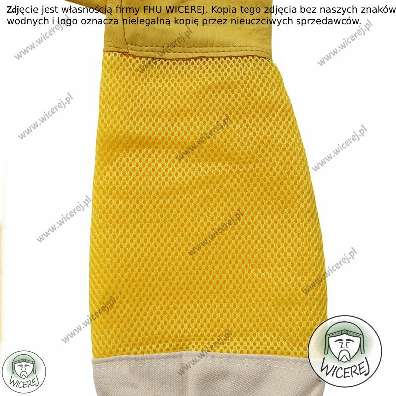 • mankiet rękawic wykonany z żółtej bawełny oraz oddychającej żółtej siateczkowej tkaniny (zapewniającej odpowiedni przepływ powietrza)