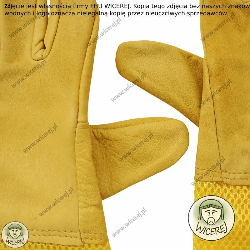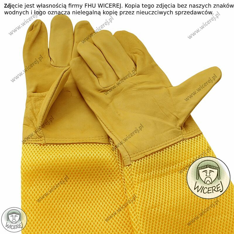 Posiadamy w sprzedaży nowe skórzane oddychające rękawice pszczelarskie Premium, długie w rozmiarze L (9). Prezentowane Rękawice ochronne dla pszczelarzy wykonane są z wysokiej jakości miękkiej skóry owczej licowej, bawełny oraz z wentylowanej siateczkowej tkaniny w części przedramiennej. Skóra owcza, z której wykonana jest część chwytna rękawic cechuje się odpornością na uszkodzenia mechaniczne oraz wytrzymałością.